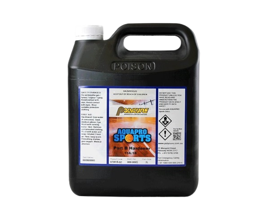 Add 1 part AQUAPRO Sports Part B Hardener to 10 parts AQUAPRO Sports Part A by volume (10A:1B). Pot life approximately 6 hours at 20°C. High temperatures will shorten pot life.